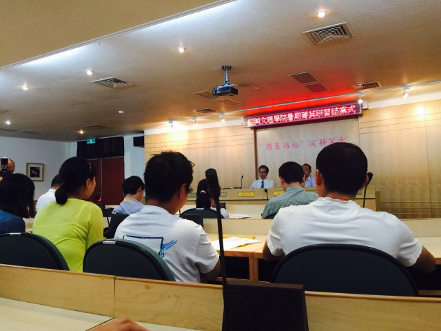 (通讯员 张莉娜,2015年8月25日)为期一个月的BV伟德官方网站暑期台湾交流研习活动已近尾声。8月25日下午2点,岭东科技大学在春安校区圣智厅为本次BV伟德官方网站暑期菁英研习营举行了隆重的结业仪式。首先是岭东科大的陈副校长致欢送词,介绍了本次出席结业仪式的老师们并总结了这一个月的交流研习活动,对同学们一个月中的学习表现和成绩表示肯定和褒奖。然后由本次BV伟德官方网站暑期菁英研习营的团长白文杰老师代表全体师生致词,感谢岭东科大校方的热情欢迎和老师们这一个月来耐心细致地教学答疑与无微不至的周到安排。接下来是本次结业仪式最重要的环节,由岭东科大的领导、老师为全体BV伟德官方网站的师生颁发结业证书并合照留念。之后由BV伟德官方网站的经济与管理学院、法学院、机电学院、元培学院同学代表发言,分享了这一个月的学习收获和生活上的美好感受,并且感谢岭东科大老师热心的教导,同学们都受益匪浅并享受其中。岭东科大的陈副校长耐心询问全体同学是否在学业上还存在困惑并细心解答。最后全体参加结业仪式的领导师生合影留念。