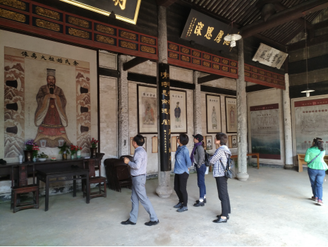 上午,教师们来到平水镇金渔岙村,走访陶宴岭古道。该古道位于柯桥区平水镇和王坛镇之间,因时代久远、保存完好、规模宏大、景色优美而号称“古越第一官道”,也是因南朝齐梁年间的道教思想家、医学家陶弘景曾隐居于此古道,故得名陶宴岭,距今已有超过一千多年的历史。古道风景独特,途中还有“饭粒石”、“神仙脚印”、“泉水林”等典故和农业学大寨时期留下来的梯田。午饭后教师们来到位于省道绍甘线与县道车竹线交接处的稽东镇冢斜古村。来到冢斜古村,首先映入眼帘的是保存完好的明清时期古建筑。位于村口的余氏宗祠,这是冢斜村中最宏大也是最重要的一个古建筑。据记载,余氏宗祠始建于乾隆年间,距今已有250多年历史,至今仍保存完好。祠堂内画栋雕檐,格调典雅古朴,造型独特,石柱古墙,前后二进,为四合院式,祠堂前厅后面即是戏台,两侧为看楼。祠前有照壁,一面写的是“本支百世”,另一面“源远流长”,是典型的祠堂格局。