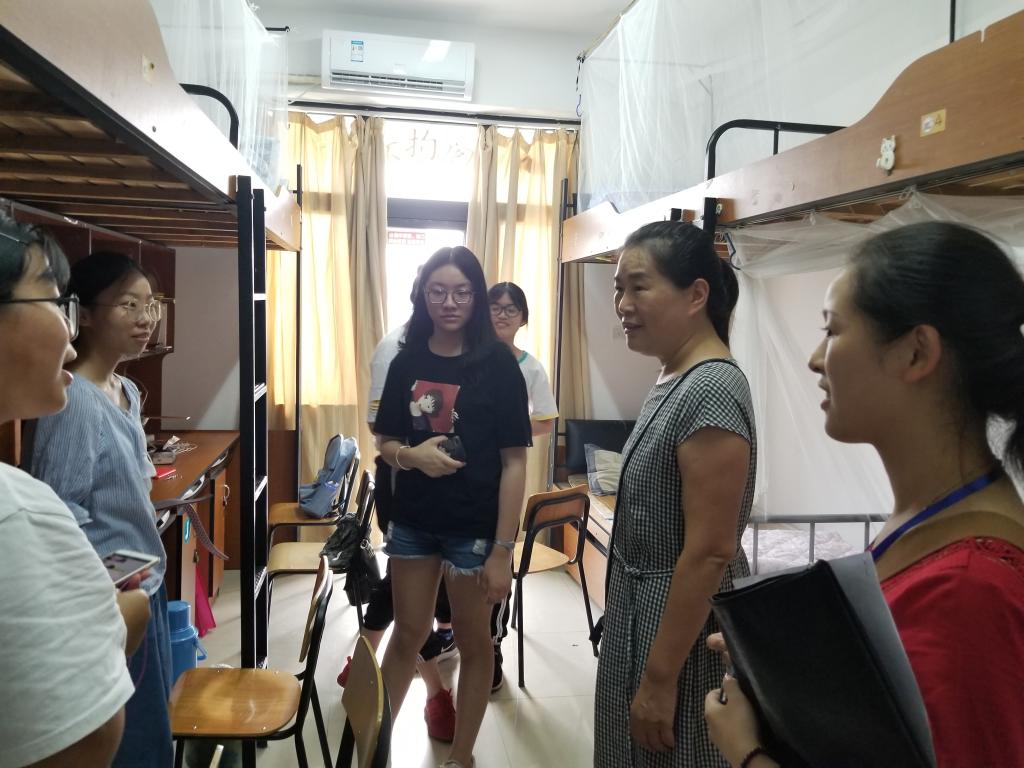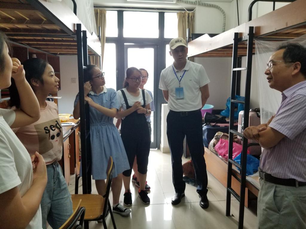 下午四点,学校领导、班主任、辅导员老师走访新生寝室,亲切关怀18级新生入住情况,仔细询问入住寝室条件、入学手续办理等相关情况。