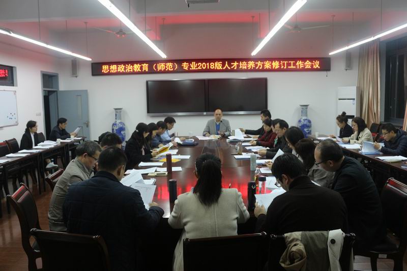 3月19日晚,学院召开思想政治教育(师范)专业2018版人才培养方案修订工作会议。思想政治教育(师范)专业全体任课教师参加了会议,会议由院长章越松主持。章院长指出,学院根据前期调研和专家访谈意见,结合学院师范专业认证工作实际,决定启动思想政治教育(师范)专业2018版人才培养方案修订工作。章院长要求,本次修订工作要坚持贯彻“学生中心、产出导向、持续改进”的理念,全体任课教师要把握工作节奏,确保按时完成本项工作。会上,全体教师还就课程教学大纲的撰写、毕业要求实现矩阵等内容,进行了深入的讨论。