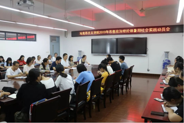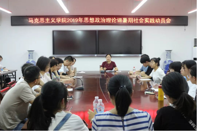 2019年6月28日下午2:00,学院2019年思想政治理论课暑期社会实践动员会在402会议室召开。会议由院党总支副书记袁海平主持,全体带队教师、团委学生会骨干及思政181班全体同学60余人出席。
