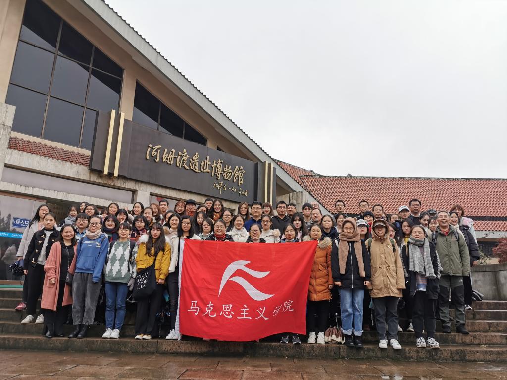 2019年12月1日早上8点30分,伟德官网全体大一大二学生及师生党员前往宁波余姚参观河姆渡遗址博物馆和原址。