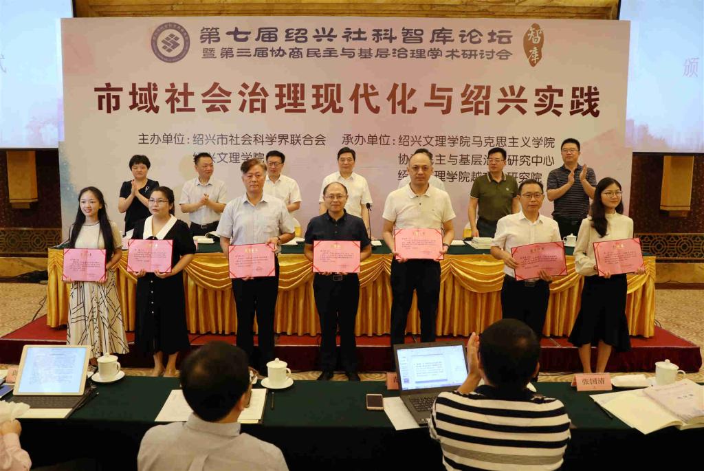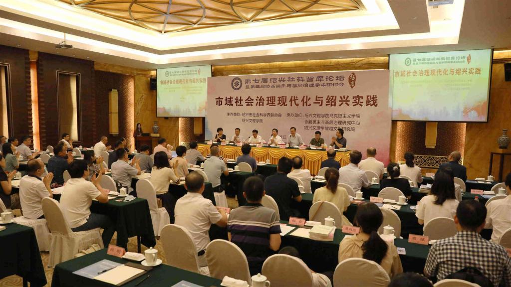 7月3日,第七届绍兴社科智库论坛暨第三届协商民主与基层治理学术研讨会——“市域社会治理现代化与绍兴实践”在绍兴国际大酒店嘉宾厅举行。浙江省社科联一级巡视员邵清,绍兴市人大常委会副主任、党组副书记杨文孝,校党委书记汪俊昌,市社联党组书记、主席柳巨波,市委宣传部副部长杨伟卿,校党委委员、宣传部部长陈均土,市社联党组成员、副主席王晶等出席活动。相关学术专家、市级有关职能部门领导、在绍有关高校科研处负责人、社科特色智库负责人、论坛论文获奖代表等参加会议。开幕式由柳巨波主持。