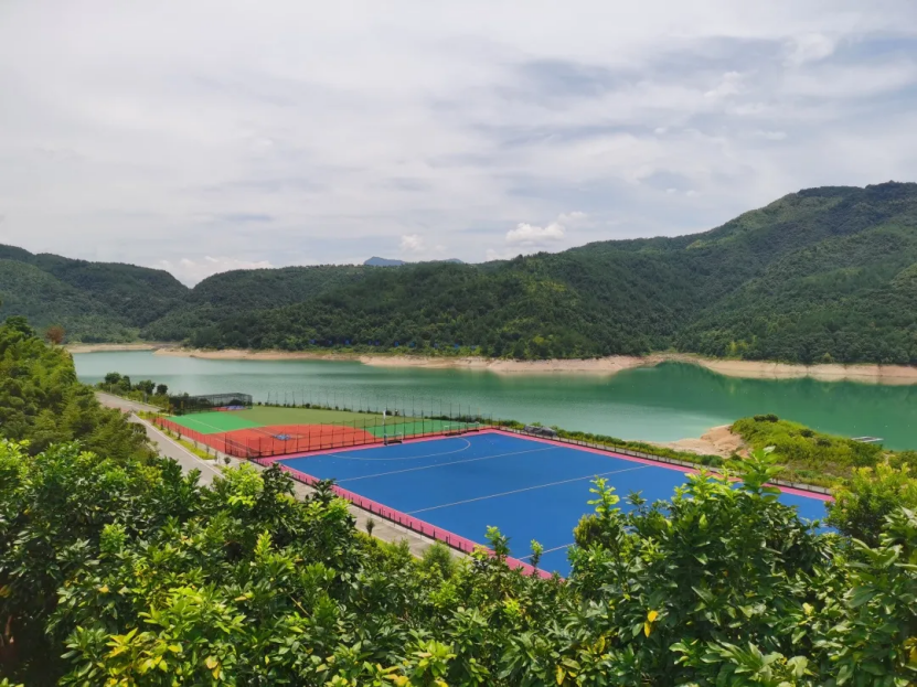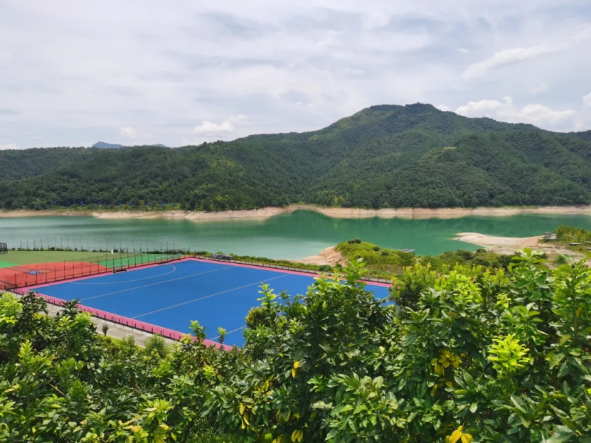 其次,以体育小镇建设为特色的飞云湖村具有较为浓厚的体育元素,在充分了解飞云湖村的历史后,小组成员伴着烈日走访了辽东训练基地等有代表性的体育场所,并在望湖广场欣赏了俯瞰视角下的飞云湖以及绿荫掩映的巨大球场;