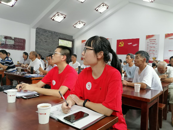 最后,实践团队师生与上旺村村干部、退休老教师等召开座谈会。师生们本着学习的态度,对上旺村如何成为新时代体现制度优越性的乡村振兴“重要窗口”进行了深入的探讨。针对上旺村党总支书记韩友法介绍的上旺村现状与发展瓶颈,师生们也对上旺村如何摘掉“先进贫困村”的帽子,重现往日的辉煌提出了具体的建议与方案。