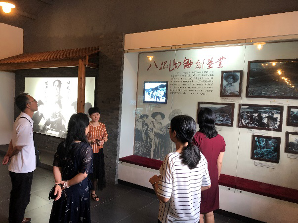 8月8日,实践团队在学院老师的带领下再访上旺村。师生们首先参观了越城区首批红色教育基地——上旺精神陈列馆。聆听了讲解员描述党员先进模范王金友带领干部和群众治理穷山恶水,改溪造田,开荒种茶,自力更生,艰苦创业,改变山村落后面貌的感人故事;感受用“八把山锄创大业”的艰苦奋斗和集体主义精神。