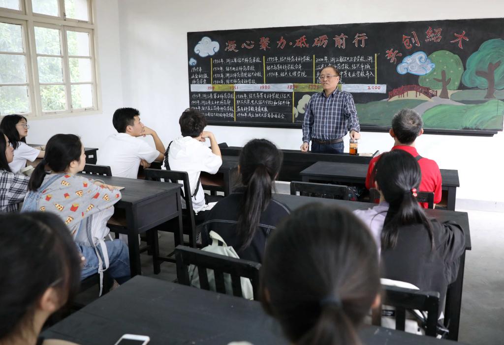 在参观校史陈列室后,沈赤书记为全体学生作了简要发言。沈书记指出,开学伊始,到宋六陵校园旧址开展始业教育很有必要,希望学生们认真参观,深切感悟,思考三个问题:老一辈学长们为什么能在如此封闭、艰苦的环境下,勤奋刻苦,取得卓越成就;我们应该学习他们什么精神,如何正确立志,定义自己的人生,定位自己的着力点;“后之视今亦犹今之视昔”,我们现在的努力能不能为以后的学弟学妹们留下点什么。