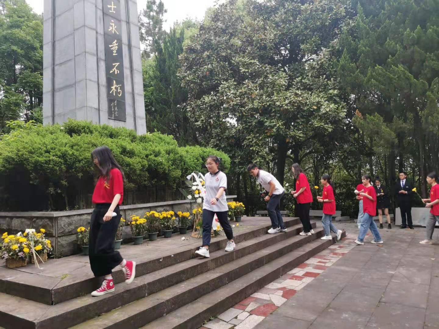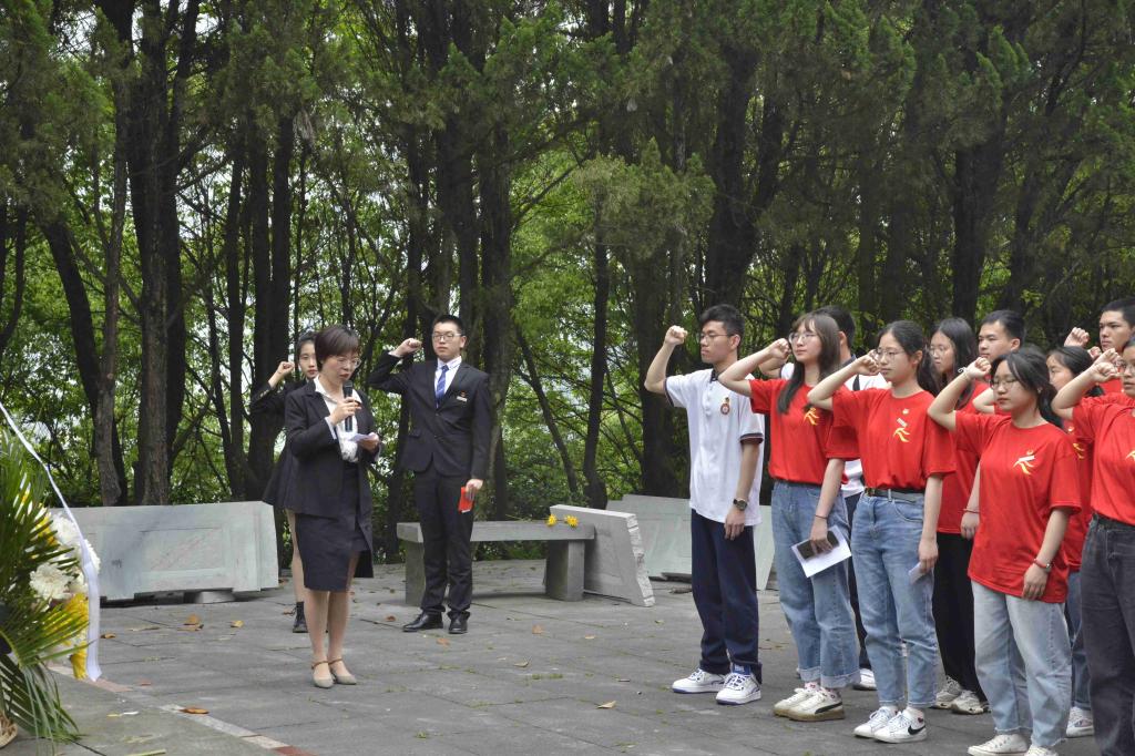 随后大家来到俞秀松烈士陵园,向俞秀松烈士三鞠躬,向烈士纪念碑敬献花篮并默哀。在校团委副书记刘灵娟老师的带领下,大家右手举拳,重温了入团誓词。活动在《中国共产主义青年团团歌》声中圆满结束。