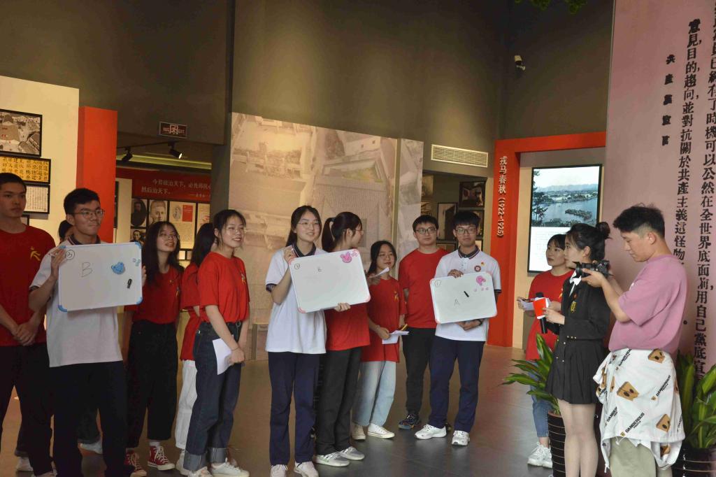 参观结束后,大家开展了丰富多彩的团日活动。现场进行了团课展示,伟德官网BV伟德官方网站学生向在场师生讲述俞秀松的革命事迹和优秀精神品质,朗读了俞秀松“红色家书”,宣讲了习近平总书记考察清华大学讲话精神,大家还将此次学习的感言粘贴在活动主题板上。活动现场还举行了百年团史知识竞赛。