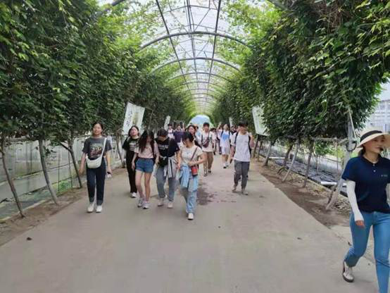同学们先是来到了米果果小镇。跟随讲解员的引领,大家先参观了乡村振兴叙事馆,里面介绍了董事长陈照米经历、米果果小镇大事记、土地来源与经营、产业“手掌”理论等,“让农民富起来”、“让乡村美起来”。接着来到了农业科普馆,感受了现代农业无土栽培和观赏农业。看完了道路两侧“米总”对农业的见解,大家进入了乡村文化体验馆,对踩高跷、打陀螺、滚铁环等传统游戏项目进行体验,围观圈养的兔、鹅等家禽家畜。最后,同学们乘坐游园小火车,游览了小镇全貌。