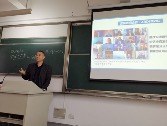 随后,宓才裕书记对本学期教学内容安排与相关要求进行了说明,明确了以《奋斗百年路 启航新征程》《共谋乡村 振兴新蓝图 同绘共同富裕新画卷》《多边主义:世界发展的破局之策》的教学主题。他强调,所有教师讲述专题要明确专题的目的与要求,提出讲课的重点与难点,并进行现场示范说课。