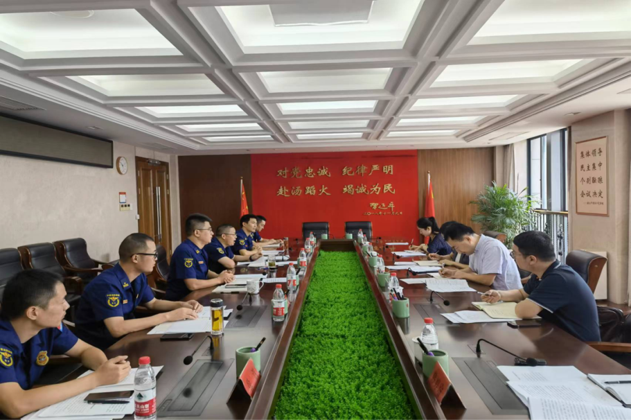 在自由交流环节,调研组成员对市消防支队“胆剑敢蹈炎,俯首为人民”的消防党建精神赞不绝口,并从政府重视、理念先行、主动创新、治理融入、服务发展五方面总结了市消防支队的创新实践。其后,调研组与市消防支队在服务经济具体案例、数字赋能实践情况、消防与基层合作等具体问题进行了深入研讨。