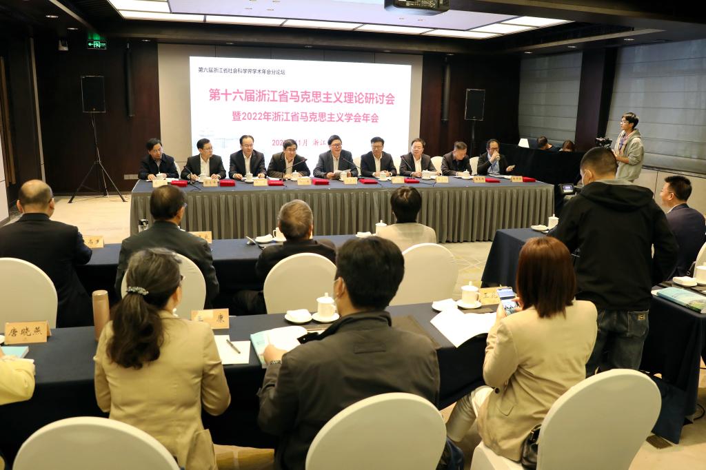 11月5日,第十六届浙江省马克思主义理论研讨会暨2022年浙江省马克思主义学会年会在绍兴召开。浙江省社会科学院院长、省马克思主义学会会长何显明,校党委书记汪俊昌,浙江省委党校副校长、马克思主义学会副会长陈立旭,省教育厅宣教处处长陈雷,校党委副书记张宏,温州大学副校长潘玉驹,绍兴市社科联党组成员、副主席蔡立峰,浙江工商大学BV伟德官方网站名誉院长、省马克思主义学会副会长陈华兴,省社会科学院《观察与思考》总编辑、马克思主义学会副会长兼秘书长黄宇,浙江省马克思主义学会理事,省内外马克主义理论的研究专家、教授等出席开幕式。会议以线上线下相结合的形式举行。开幕式由何显明主持。