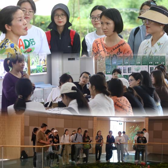 踏入余村,抬眼是青峦叠翠、竹影摇曳,低头即为绿水碧波、溪水潺潺。师生们并肩来到“两山”石碑前,感悟“绿水青山就是金山银山”的箴言。走过矿山遗址,来到未来社区展厅,再前往余村青年合伙人专项计划空间,实践团的成员们追流溯源,探寻余村将生态资源优势转化为生态经济优势,以人才链赋能乡村振兴的底层逻辑。