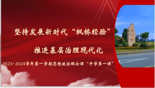 开学一周来,以《坚持和发展新时代枫桥经验 推进基层治理现代化》为主题的思政开学第一课,在155个思想政治理论课教学班、近10000名学生群体实现覆盖式教学,从而在政治引导、学理阐释和价值塑造上进一步彰显马克思主义理论的强大力量。