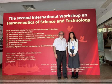 (图为大会期间许苗同学与德国著名技术哲学家Alfred Nordmann教授合影)