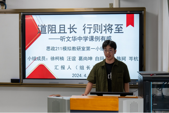 教而不研则浅,研而不教则空。回校后,王玉瑶向思政211班分享了备课心得,并强调议题式应注重议题的情境性、导向性、可议性、知识性。俞婉君老师从情景材料的选择、问题情境的设置、课堂活动的安排等方面对两堂展示课进行点评,并给出了几点建议:一个好的课堂应该忠于情境、选择合适的案例一案到底。俞老师深入浅出的阐释和一针见血的点评,将课堂指向了更好的方向,让在场的同学都获益匪浅。