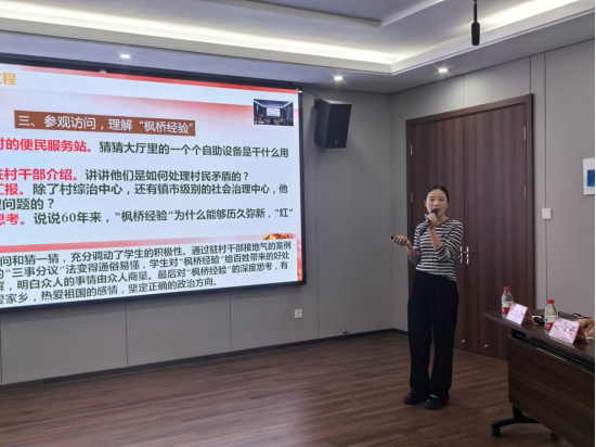 嵊州市西湖小学思政课教师杨旦霞分享:大中小四个学段同台展示同主题的教学说课,让我更加明确了小学阶段思政教育的启蒙定位:走走看看、听听故事、链链生活。同时对其他学段的教学深度有了更明确的定位,这对以后教学目标确定有了更明确的指向。