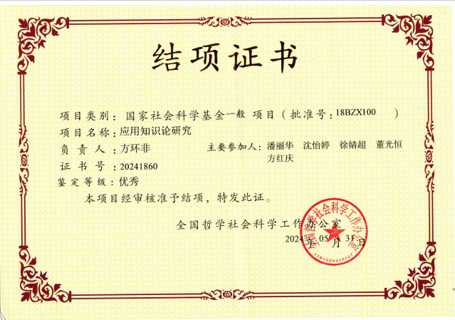 近日,伟德官网方环非教授主持的国家社科基金项目《应用知识论研究》(2018BZX100)以优秀等级结项。该项目旨在回应人们所面临的两个方面理智环境的变化,一是新技术、新媒体兴起改变传统信息来源衰落对知识获得与信念辩护的方式,二是知识专业化加重人们在技术、医药、法律等复杂问题的知识主张与辨识对他人的依赖。