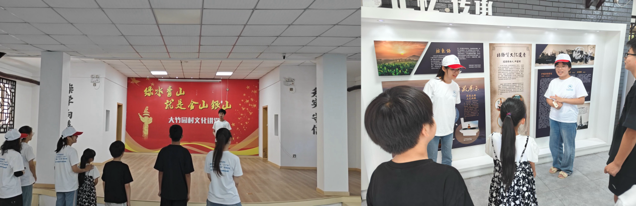 为实地了解当地儿童的研学需求,实践队员在大竹园村文化礼堂对近10位小朋友开展爱心家教。为了让孩子们更好地掌握知识,各队员各显神通,语言的交流,思维的碰撞……小朋友积极配合,收获颇多。最后,实践队员借助文化礼堂展陈为所有小朋友宣讲“绿水青山就是金山银山”理论和当地的竹文化、泥塑文化,让小朋友寓学于乐,学有所得,将思政小课堂融入社会大课堂。