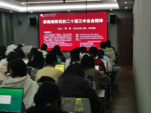 李朱老师以深厚的学术功底、幽默风趣的语言,对如何从二十届三中全会精神中寻找选题进行了深刻的阐述,对学院教师和学生的未来发展提供了具有前瞻性的建议,受到在座师生的一致好评。