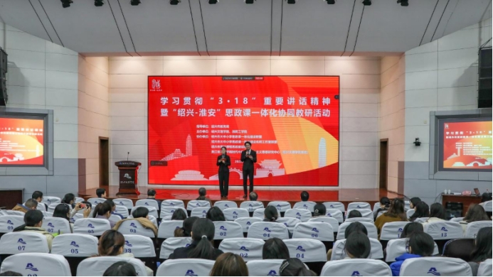 3月18日,为学习贯彻“3·18”重要讲话精神,学校联合淮阴工学院开展了“绍兴-淮安”思政课一体化协同教研活动。活动于校铁城科教馆报告厅和淮阴工学院报告厅同时拉开帷幕,来自两地的思政教研员及一线教师代表共500余人线上线下齐聚,通过专题研讨、现场教学展示等形式,探索新时代思政课改革创新路径。