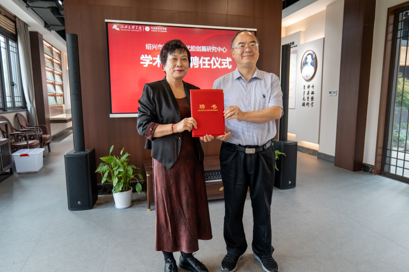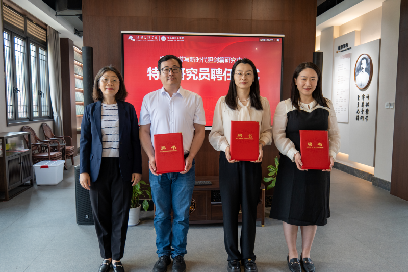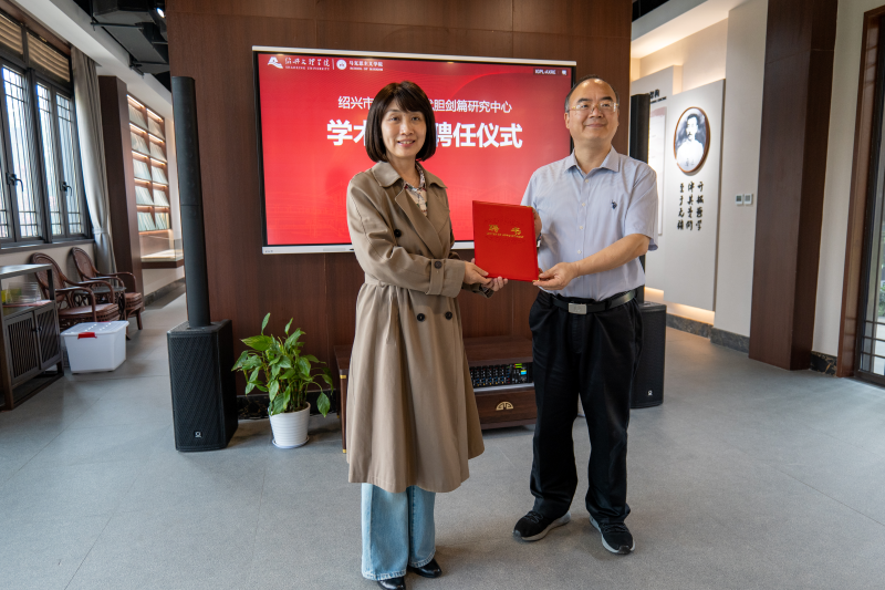 黄坚代表学校为孙春晨、杨义芹、陈伟宏颁发绍兴市谱写新时代胆剑篇研究中心学术顾问聘书。