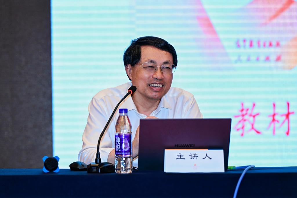 陶文昭教授以《用好<习近平新时代中国特色社会主义思想概论>参考讲义》为题,讲述了讲义编写的过程,从讲义的功能定位、内容概要和讲清、讲深、讲透、讲活“四讲”要求等方面,介绍了讲义的编写特点、呈现方式、语言风格、教学内容,并逐章阐释了从教材体系向教学体系的转化逻辑。