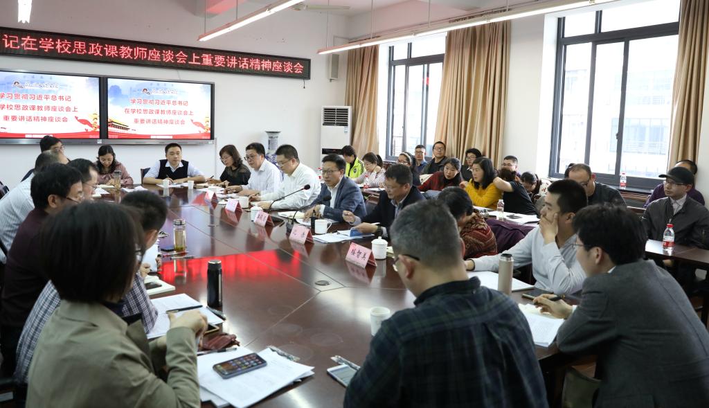 3月18日上午,习近平总书记在京主持召开学校思想政治理论课教师座谈会并发表重要讲话。3月20日下午,学校在BV伟德官方网站402会议室组织召开座谈会,专题学习贯彻习近平总书记重要讲话精神。校党委书记汪俊昌,党委副书记沈赤,党委委员、宣传部部长陈均土,教务处、人事处、BV伟德官方网站负责人出席座谈会,全校思政课专职教师、兼职教师代表和形势政策课兼职教师代表等参加座谈。座谈会由陈均土主持。