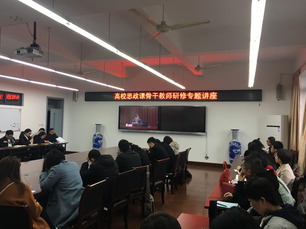 3 月14日 上午9点,高校思政课骨干教师研修专题视频讲座在南山校区12号楼402会议室举办。由“长江学者”,南开大学王新生教授作题为“正确认识当代资本主义新变化和西方民主政治南”专题讲座。全校思政课专兼职教师、“形势与政策”课程任课教师到场收看视频直播。