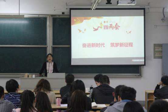教师教育学院党委副书记、《形势与政策》课教研室主任陈红从政府工作报告、宪法修正案、党和国家机构改革、选举产生新一届国家领导人等方面剖析了2018全国“两会”精神。