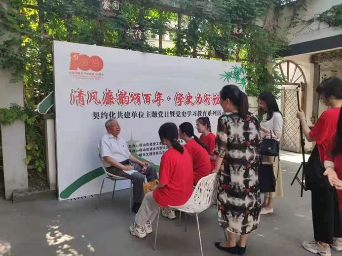 5月10日下午,水沟营社区小院里人头攒动,有白发苍苍、神采奕奕的水沟营社区老党员,也有身穿红衣、潮气蓬勃的年轻大学生,还有来自塔山街道和BV伟德官方网站机关第二党支部的党员们。他们都是来参加“清风廉韵颂百年•学史力行访百人”主题党日活动的。
