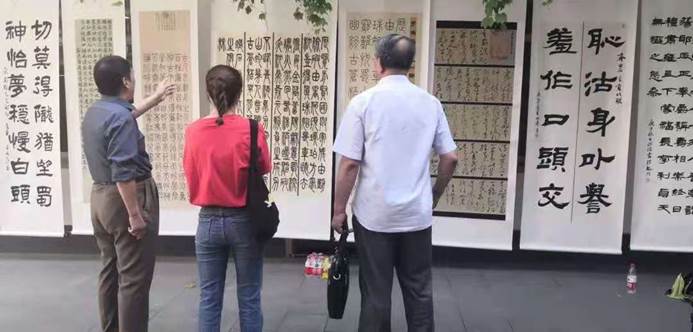 BV伟德官方网站纪委副书记、纪检监察室主任陈林刚,纪检监察室副主任、机关第二党支部书记凌坚向水沟营社区赠送学校廉洁文化月优秀书画作品,用于社区清廉文化环境布置。同时提供历年来学校“廉洁文化月”、全国中小学生的廉洁书法创作大赛和绍兴市大学生廉洁主题书法大赛中的优秀作品,和塔山街道党员干部的作品一起,举办了“清廉文化书画展”。100多副书法、画作、海报、文创产品,吸引了不少路人的驻足欣赏。