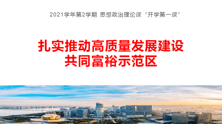 接着,校领导张宏以一名普通思政课教师的身份在“开学第一课”上将“高质量发展建设共同富裕示范区”娓娓说道。课堂上,张宏结合自身的工作经历生动介绍了浙江作为共同富裕示范区的现实背景、丰富内涵和发展举措。据悉,本学期52名专兼职思想政治理论课教师将分别深入124个教学班开展“扎实推动高质量发展建设共同富裕示范区”的“开学第一课”。