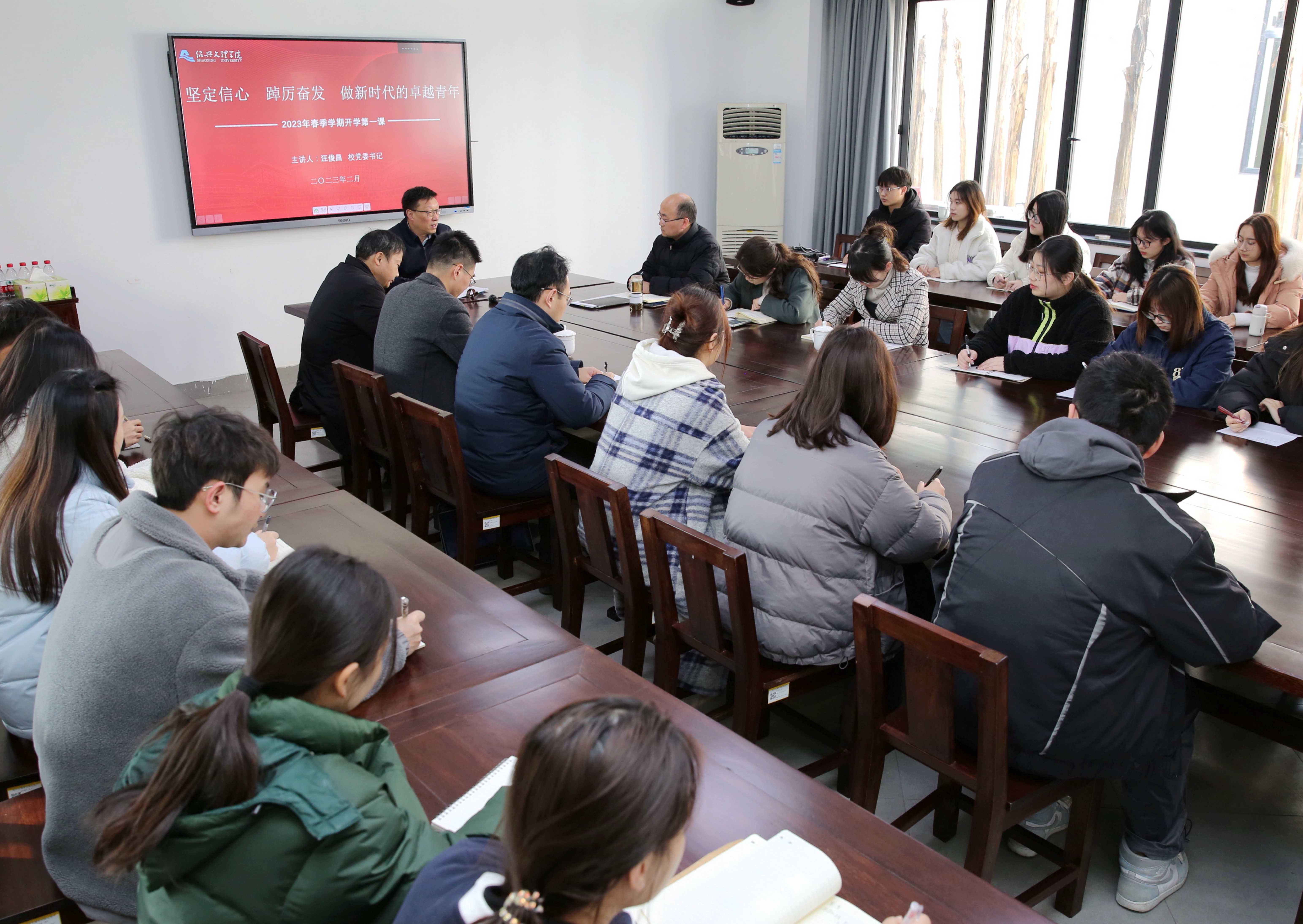 2月22日下午,BV伟德官方网站党委书记汪俊昌走进兰亭书法艺术学院,以《坚定信心 踔厉奋发 做新时代的卓越青年》为题为学生上“开学第一课”,带领青年学子共同回顾一起走过的三年抗疫路,引导学生正确认识当前疫情防控政策的调整转段,深刻感悟“生命至上、举国同心、舍生忘死、尊重科学、命运与共”的伟大抗疫精神!勉励学生心中有梦、肩上有责、脚下有路、眼里有光,争做理想信念的坚定者、民族精神的传承者、知行合一的实干者和学习生活的热爱者。他寄语同学们在新的学期,坚定信心、踔厉奋发,以全新的面貌和饱满的热情投入到新的学习、新的挑战,以更加优异的成绩展现全新的自我。