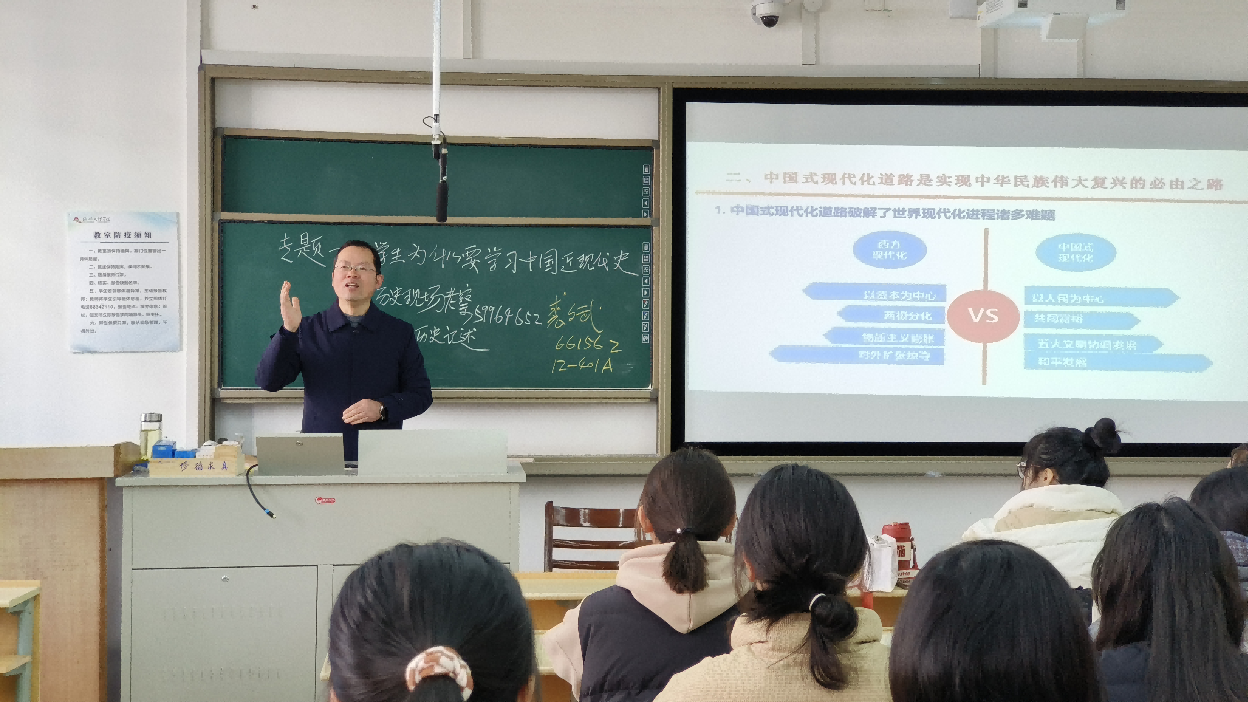 为用好思政课堂主渠道,学校结合当前国际国内形势,以问题为导向,确定开展以“以中国式现代化全面推进中华民族伟大复兴”为主题的“开学思政第一课”,并为授课教师提供统一的课程教案和PPT课件。全体思政课教师认真备课、磨课,一堂关于“中国式现代化”的思政大课拉开帷幕。