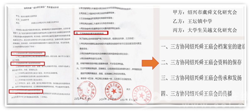 据悉,在俞婉君等的努力下,绍兴舜王庙会已成功申报了第五批国家级非物质文化遗产代表性保护项目,研究会被国务院授予国遗项目保护单位。研究会与BV伟德官方网站大学生吴越文化研究会、绍兴市柯桥区王坛镇中学三方缔结共建协议,建立大学生助推非遗教育传承的平台,引导大学生在延续文化根脉、弘扬优秀文化中发挥应有作用,推动传统文化走进现代生活,打造“青春激活非遗”样板。