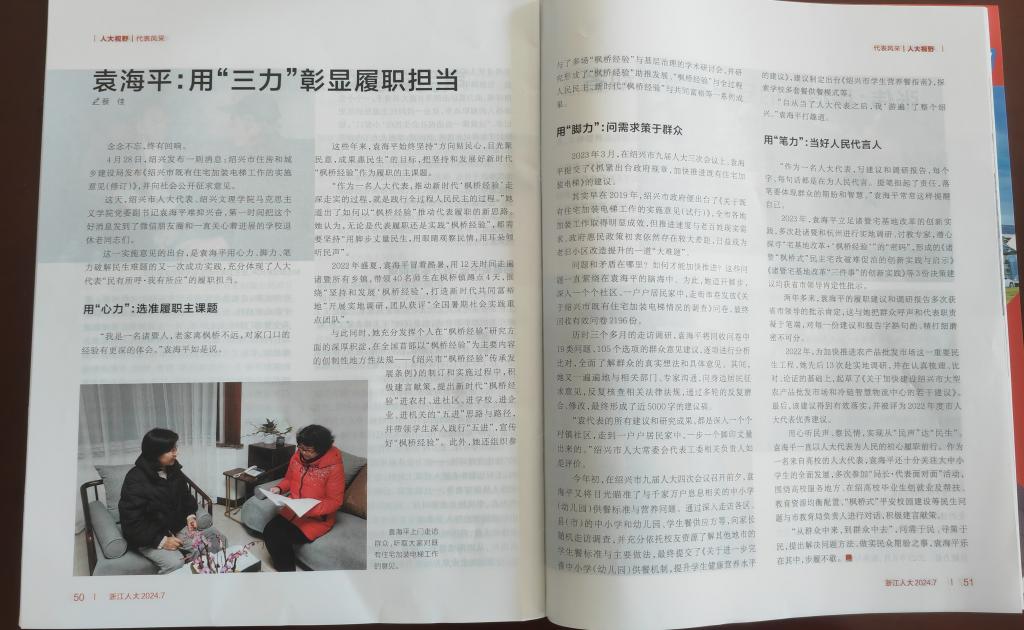 《浙江人大》杂志2024第七期:袁海平:用“三力”彰显履职担当