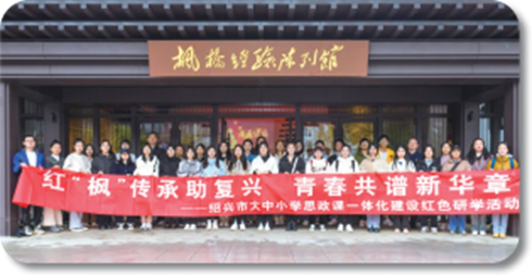 学校先后获省级及以上各类教学成果奖26项,其中《循迹溯源用好“枫桥经验”思政“富矿”》入选浙江省习近平新时代中国特色社会主义思想进课程教材典型案例,思政课一体化建设实践成果先后获批教育部和浙江省教学研究项目10余项、精品项目3项。在学校的牵头引领下,大中小学思政课一体化建设的参与主体不断扩大,全市150余所学校、1000余名思政课教师和思政专业学生、50000余人次中小学生参与一体化教学活动,相关成果被《人民日报》《光明日报》和央视、浙江卫视等媒体报道50余次。学校开设“绍兴市大中小学思政课一体化建设”专题网站,并在潮新闻客户端打造“时政进校园”“田野思政”“绍兴文化青年说”等专栏,累计播出超60集,每集浏览量2万+,其中党史专栏9集的累计浏览量超335万,产生了广泛的社会影响。