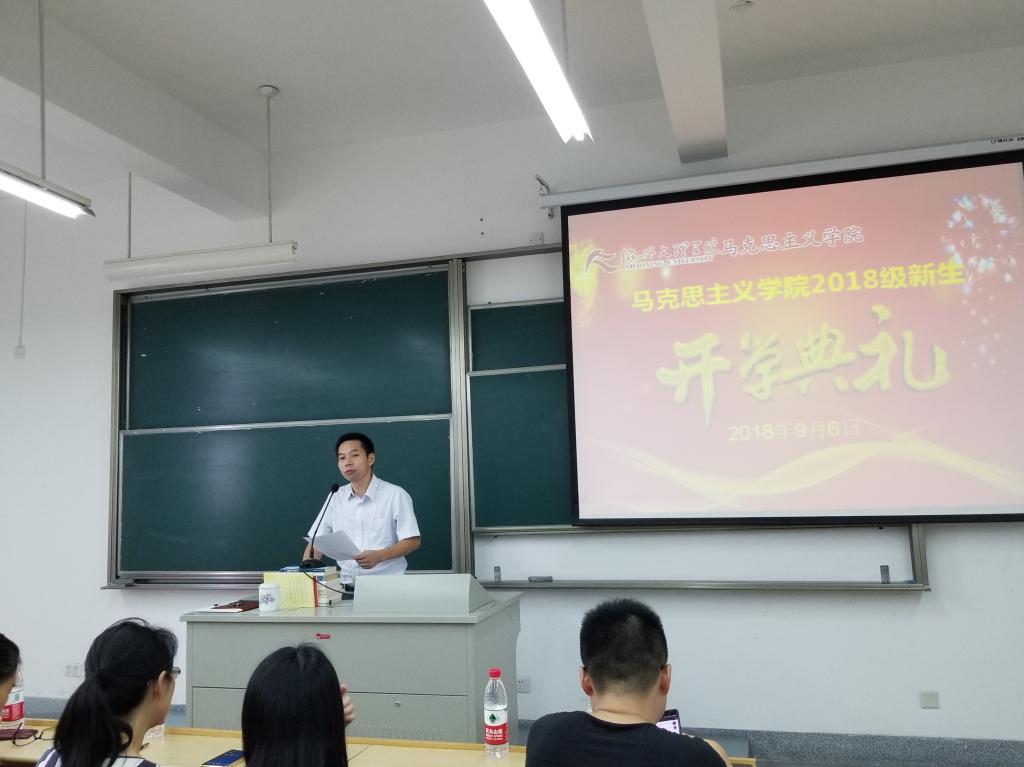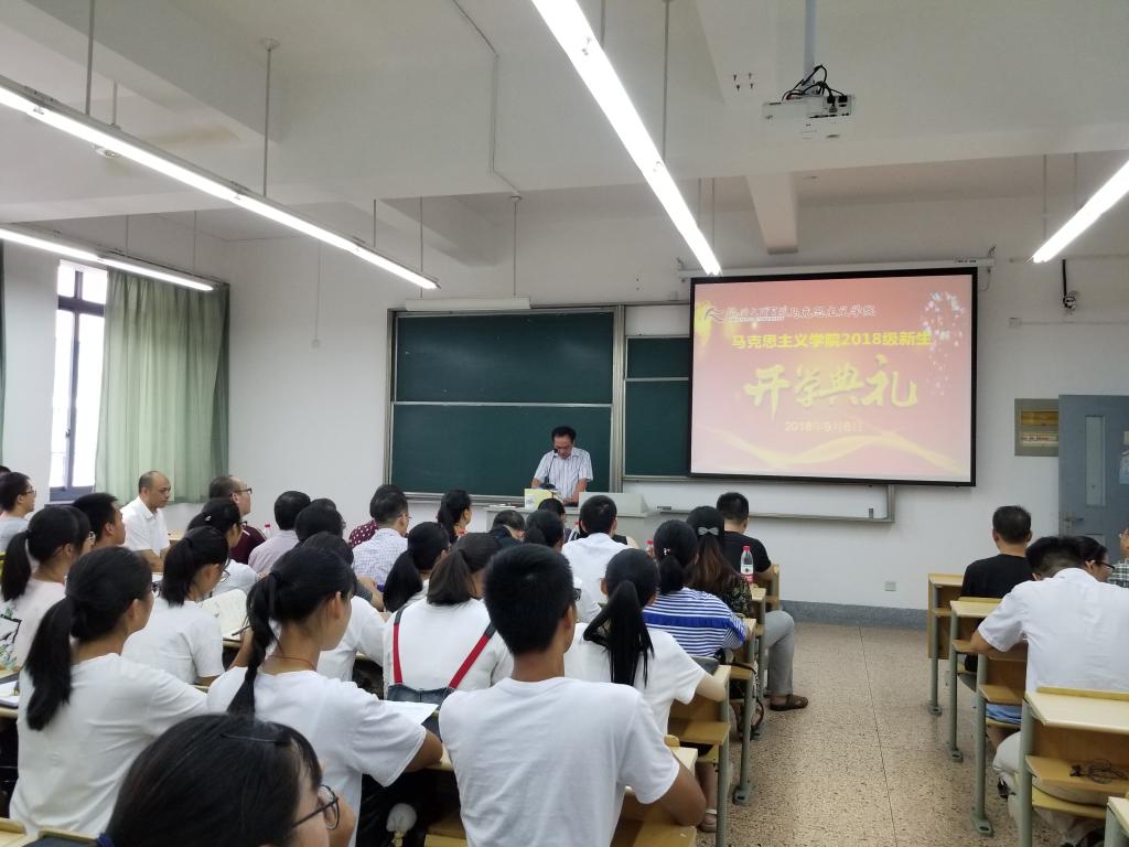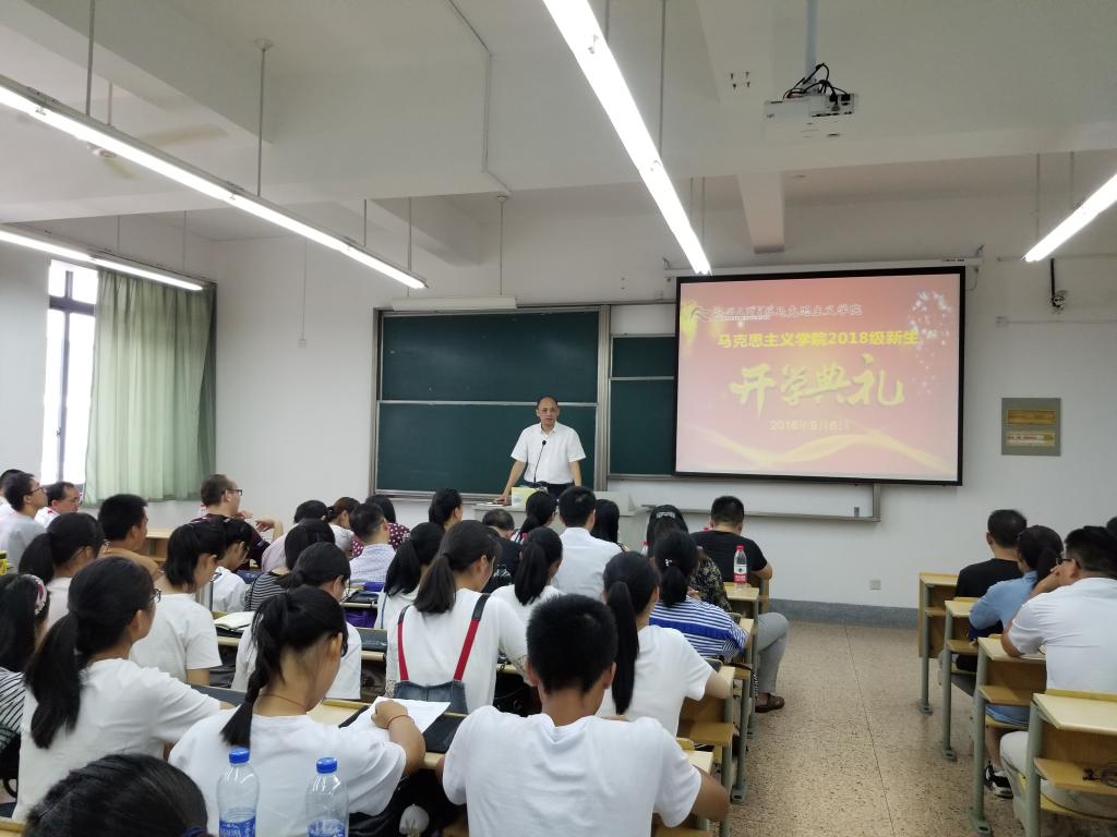 早上8点,学院2018级新生开学典礼在306教室隆重举行。学院党政领导、全体专任教师、新生班班主任、辅导员、团委学生会成员及2018级全体学生参加,开学典礼由院长章越松主持。