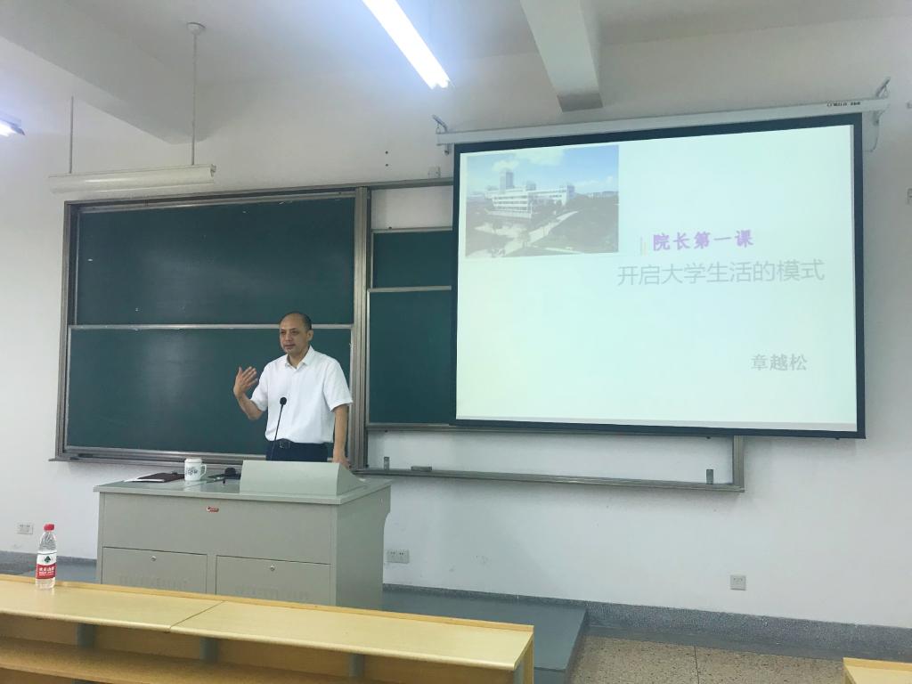 “院长第一课”期间,章越松院长作题为“开启大学生活的模式”的始业教育讲学。章院长以大学为核心,与新生们共同探讨了三个问题:第一,什么是大学。大学之大在于拥有高素质的教师团队和大量求知的学生。他告诫新生们一定要做好自己的人生规划,立志高远,才能不负时光。第二,为什么要读大学。大学除了内容丰富的生活,还提供了更高的眼界和视野,大学是寻梦的地方,是独立的尹始,是自由的天堂。大学可以锻炼同学们的独立能力、培养人性为善,由此能够珍惜光阴,思考人生,筑梦未来。第三,如何读大学。章院长提出三点要求:学会读书,提升能力,注重实践。读书是一抹鲜亮的底色,专业学习是有字之书,社会实践是无字之书,希望大家能够多读书,读有字之书更要读无字之书,从内在提升自己,规划好自己的大学生活,努力实现自己的人生目标。
