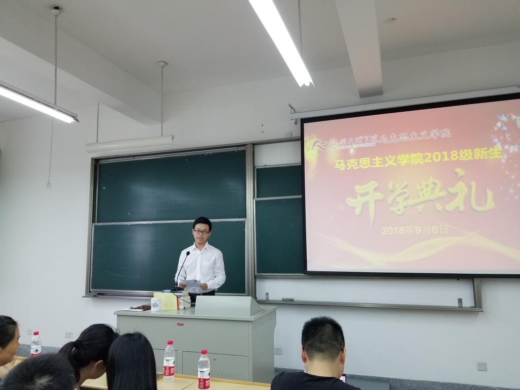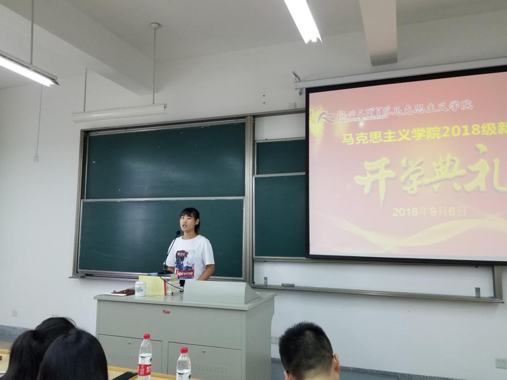 老生代表思政151班钱颀枫向新生们介绍了自己的大学生活,希望大家敢于拼搏,实现青春梦想。新生代表思政181班黄玥讲述了对大学生活的憧憬也对自己未来的学习和生活做了四点规划,与同学们共勉。