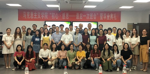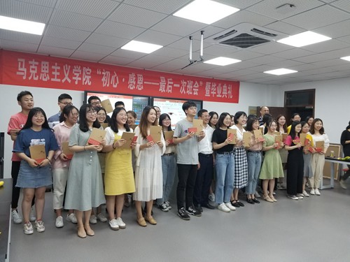 以师生联欢形式,将“师德情怀”贯穿最后一次班会,班主任上好最后一堂课。自制情景剧《百年情归五四》、朗诵《不说再见•相约十年》、往届优秀毕业生经验交流、2019届毕业生发言、班主任寄语等环节,回顾毕业生从大一报到时的情况、第一次班会、第一次班级活动、第一次经典诵读等,重提毕业生们大一时写下的心愿,并对学生达成情况给予掌声和鼓励。班会最后,师生共同在签名板上签名,合唱歌曲并合影留念。