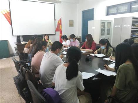 本次会议共分五个环节。第一个环节由学生党员任灵姣介绍参会人员和会议流程,并且郑重宣布会议的开始。