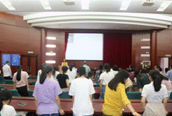 首先,袁海平副书记代表全院教职工热烈欢迎2019级新生的到来,并介绍了思政专业近几年取得的成绩。随后,全体与会人员面向国旗肃立,奏唱《中华人民共和国国歌》。