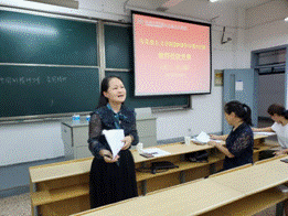 比赛中,同学们各展神通,激烈而又充满创新与意义。有的同学板书设计新颖,逻辑清晰:天平、原子弹、电影放录机、手绘中国地图等,以及运用框架式板书;有的同学开展了有趣的活动:由四个小故事变化成“中”字、“对症下药”小游戏、情景剧、小组竞赛等;有的同学镇定自若,流畅的表述引人入胜:让学生闭上双眼以听故事的形式身临其境、感同身受;还有的同学利用时政热点吸引学生、活跃课堂氛围。