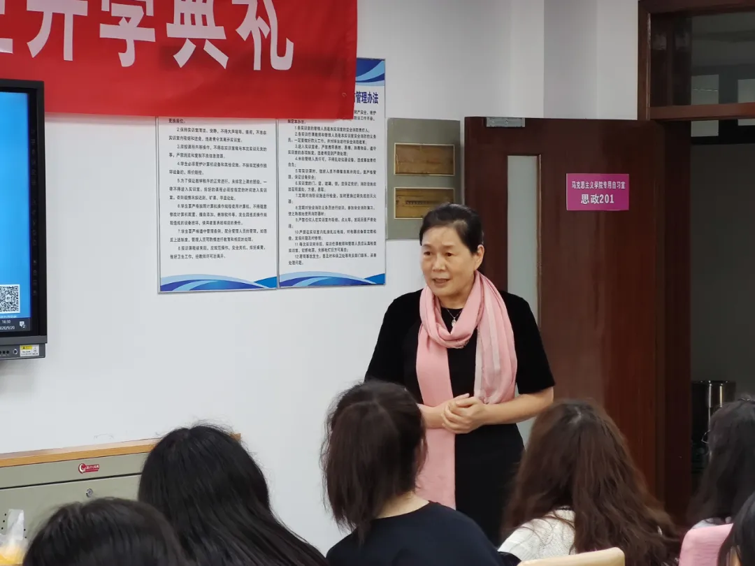 首先,教研员陈雅琴老师上台演讲。陈老师根据自身经历,从三个角色出发:作为学姐,告诉同学们选择文理学院的决定是正确的;作为母亲,希望同学们能适应大学的独立生活,做好自我约束;作为教研员,告诫同学们要志存高远,脚踏实地,在自主学习、独立探究的同时,也要具有团队合作精神。