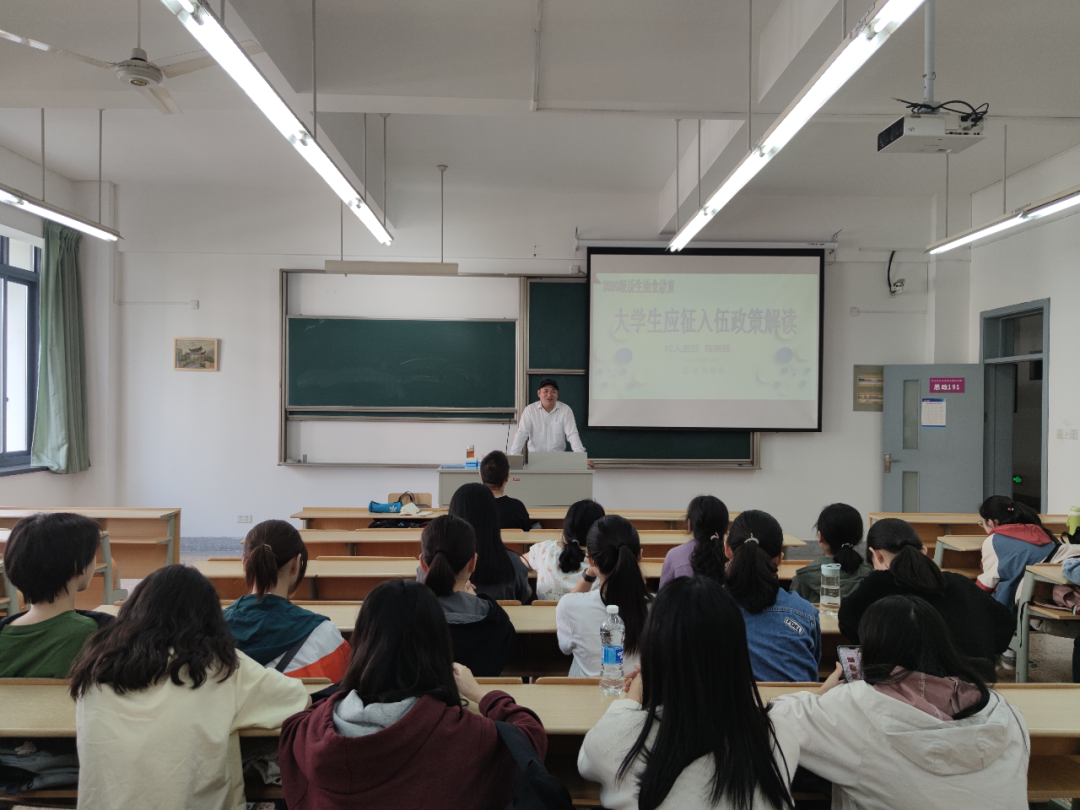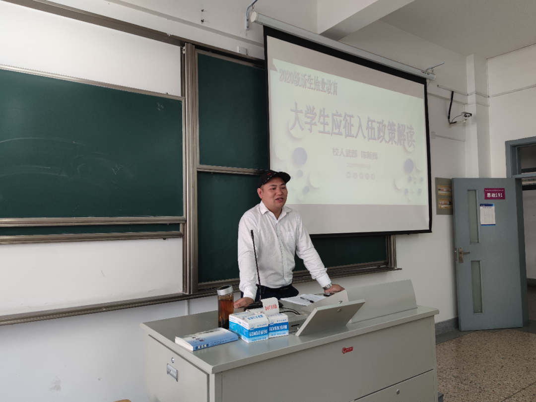 2020年9月24日上午10点30分,在南山12号楼308教室举行了“大学生应征入伍政策解读”讲座。主讲人是校人武部陈新辉老师,BV伟德官方网站思政201班同学参加讲座。
