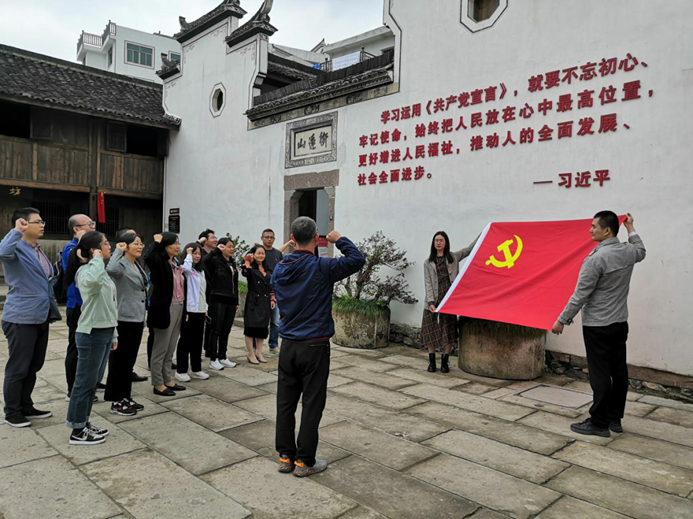 红色之旅首站是位于义乌市城西街道分水塘村的陈望道故居。在这《共产党宣言》中译本诞生一百周年之际,全体师生党员走入陈望道同志翻译《共产党宣言》的染坊和故居,感受陈望道先生为中国之崛起而奋斗的热情,重走信仰之路,寻悟初心之旅。参观结束后,全体师生党员在刻有总书记对于如何学习《共产党宣言》的论述墙下庄严宣誓,每一个高高举起的右拳、每一句铿锵有力的誓言都传递着党员同志们的初心和使命!