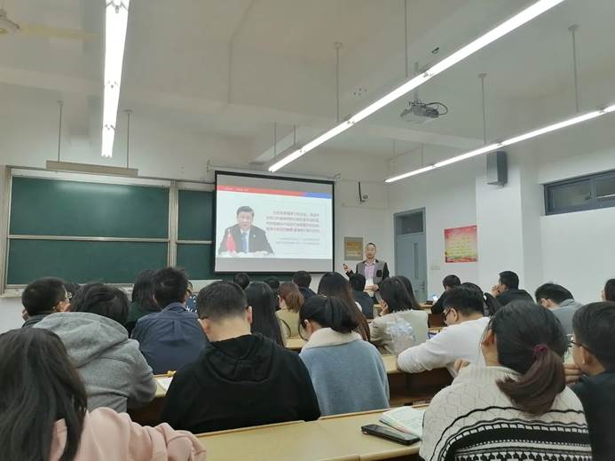 在会上,宓书记先向各听课教师展示了形势与政策课的三个时事热点问题的授课方式,同时向各位授课教师提出几点建议: